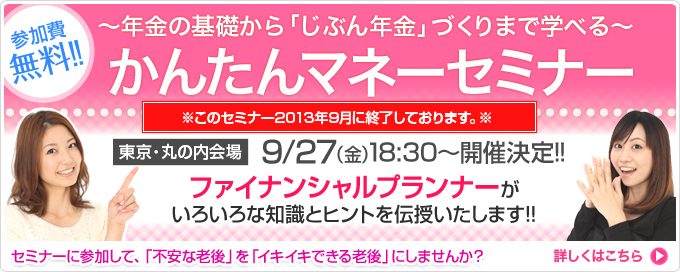 2013年9月27日に開催された第7回目の無料マネーセミナーでは、『年金の基礎から保険を活用した資産形成まで』をテーマに行われました。