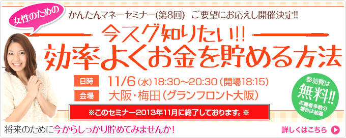 2013年11月6日に開催された第8回目の無料マネーセミナーでは、『〜今すぐ知りたい!!〜効率よくお金を貯める方法』をテーマに行われました。